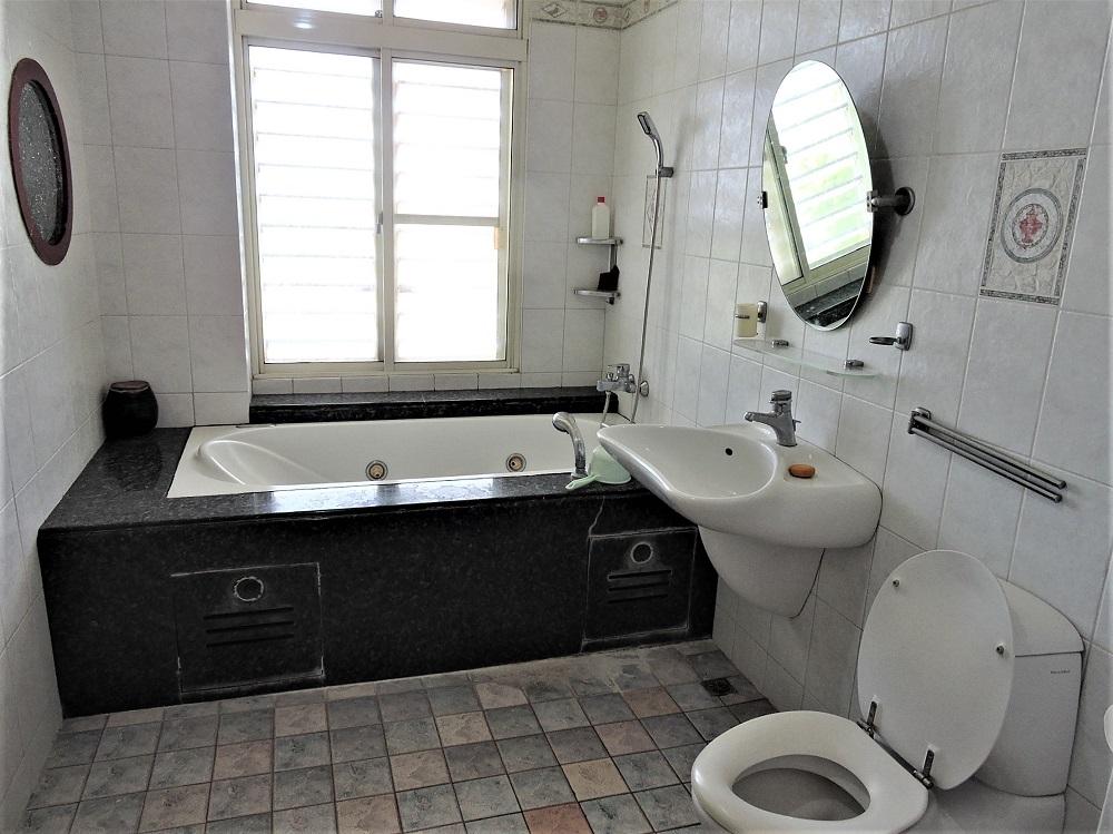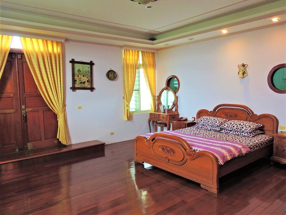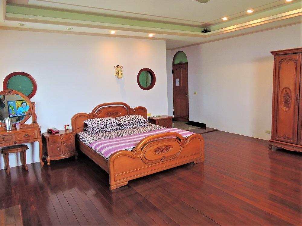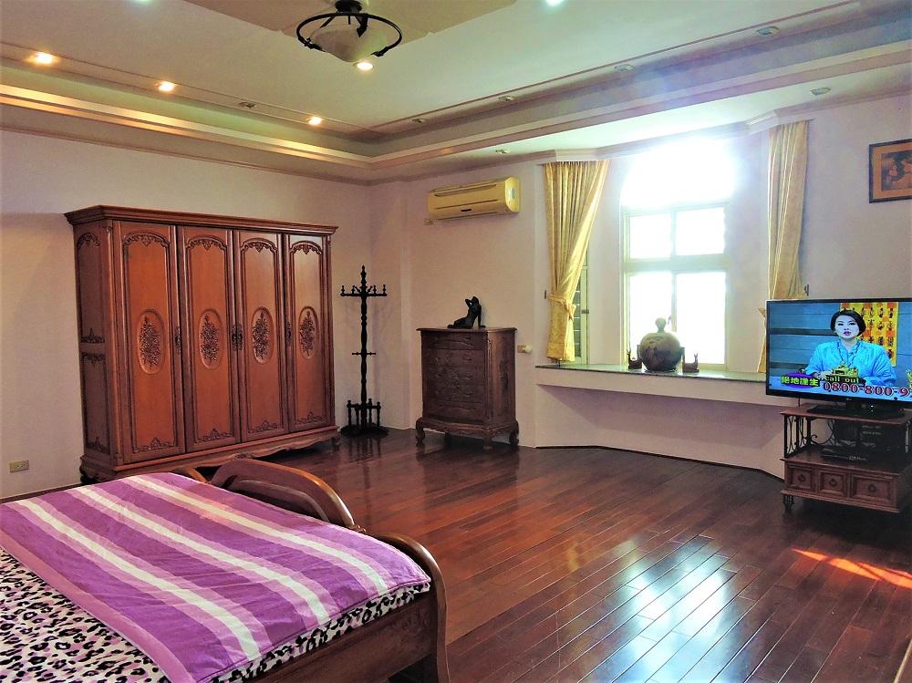 - 客房說明: 14坪大套房配紫檀木地板,衛浴採用西德VB名牌與按摩浴缸,浴室牆壁地板用義大利古樸典雅瓷磚。