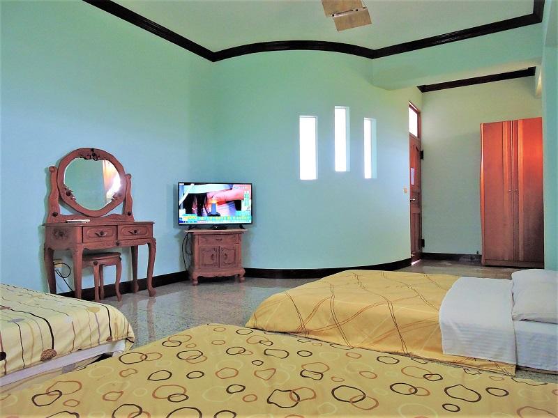 - 客房設備: 電視,第四台,窗戶,冷氣機,盥洗用品,衛浴在外面與他人共用,WI-FI,磁磚,衣櫃,梳妝台